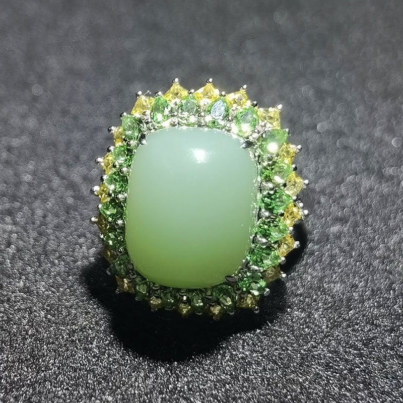 金镶玉粉青戒指