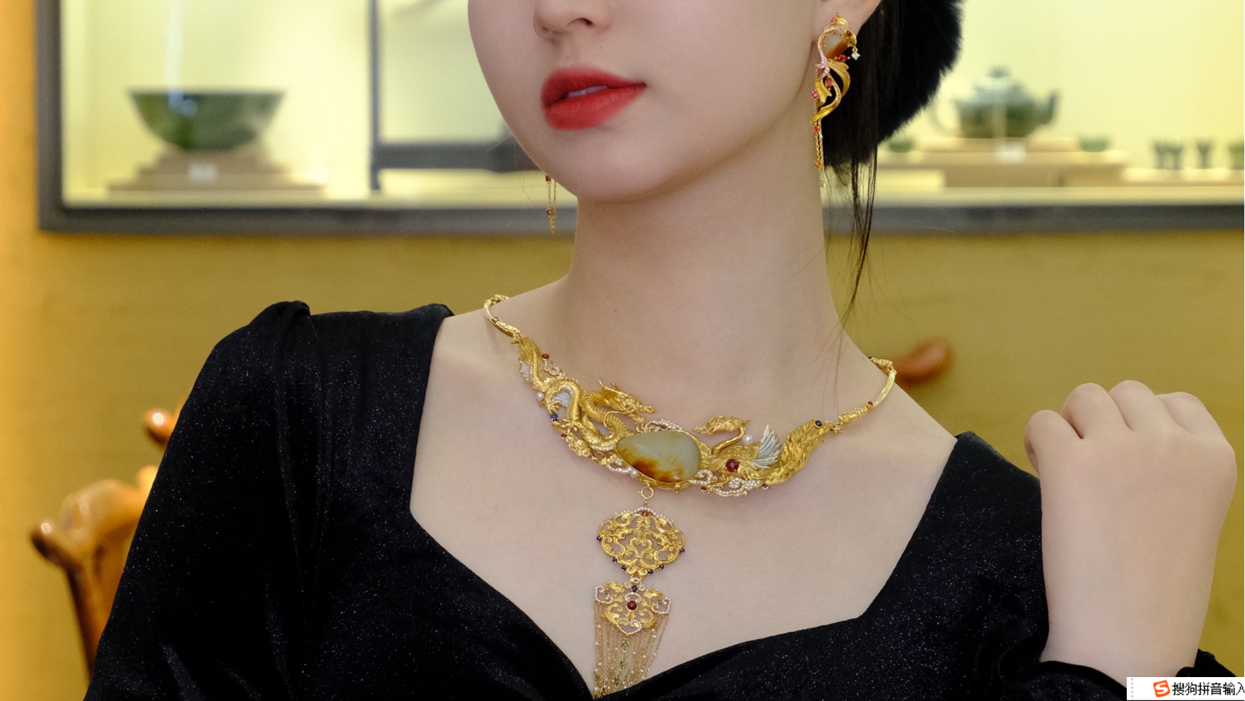 龙凤呈祥金镶玉项链|国韵天成,华贵臻品