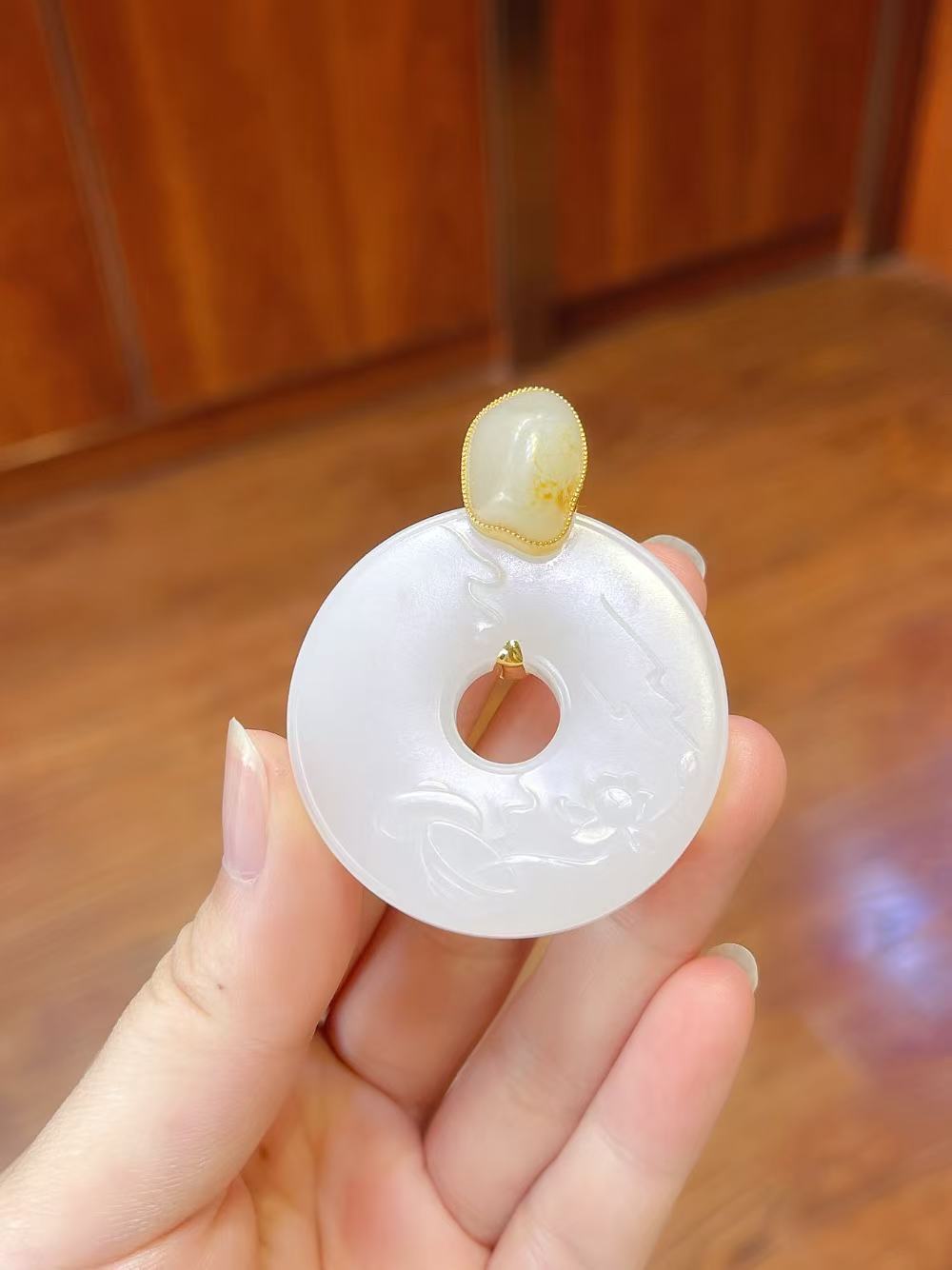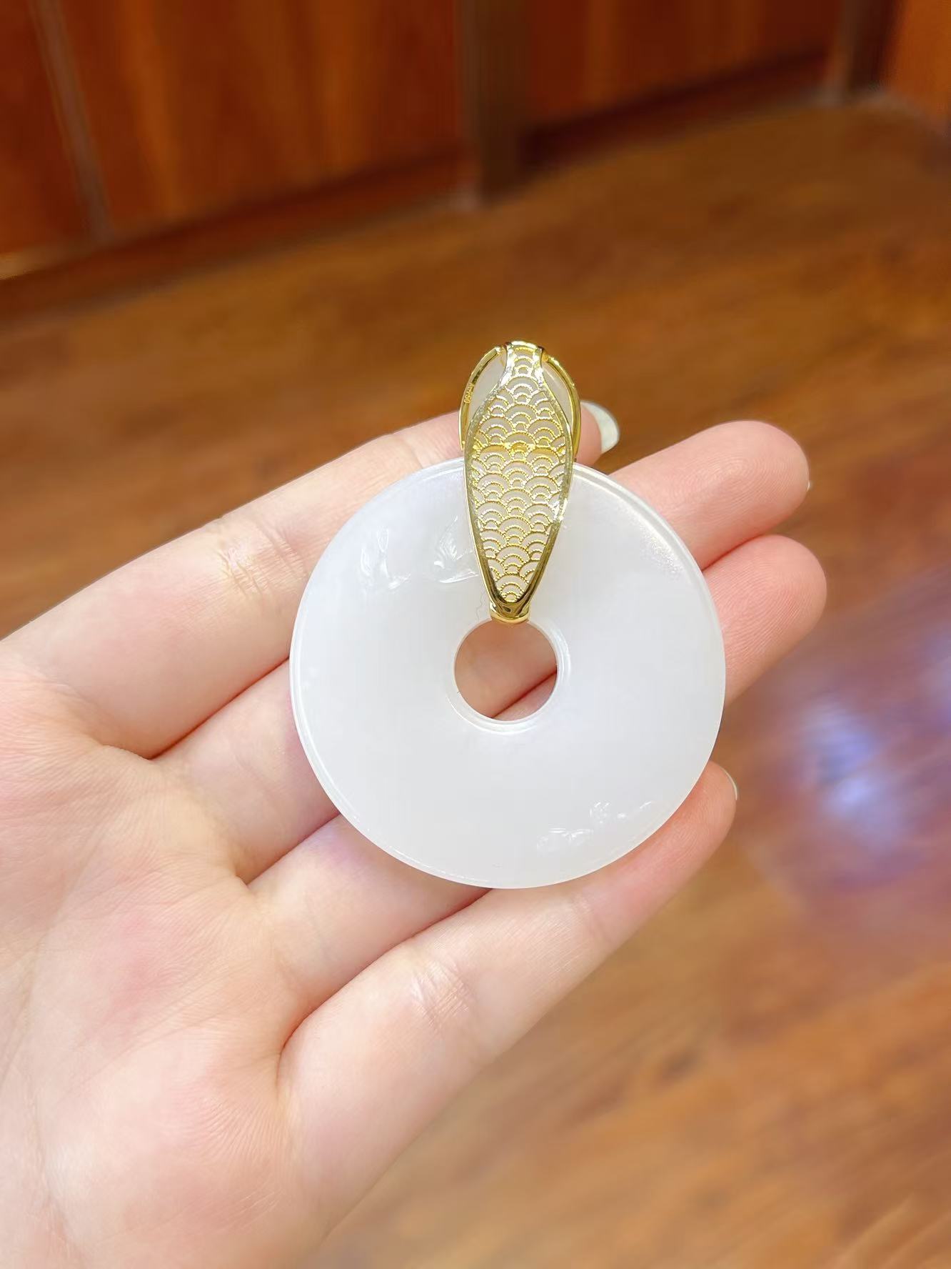 场景适配:日常佩戴,玉的温润衬出东方雅韵;重要场合搭配,金镶细节提升华贵感。自留祈福(藏纳平安喜乐),或馈赠亲友(传递圆满心意),皆为上选,让玉的光泽与金的温度,伴岁月流转,护一生安康。