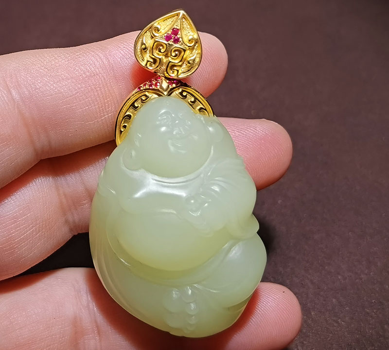 金镶黄玉佛吊坠|金辉映玉,笑揽福泽